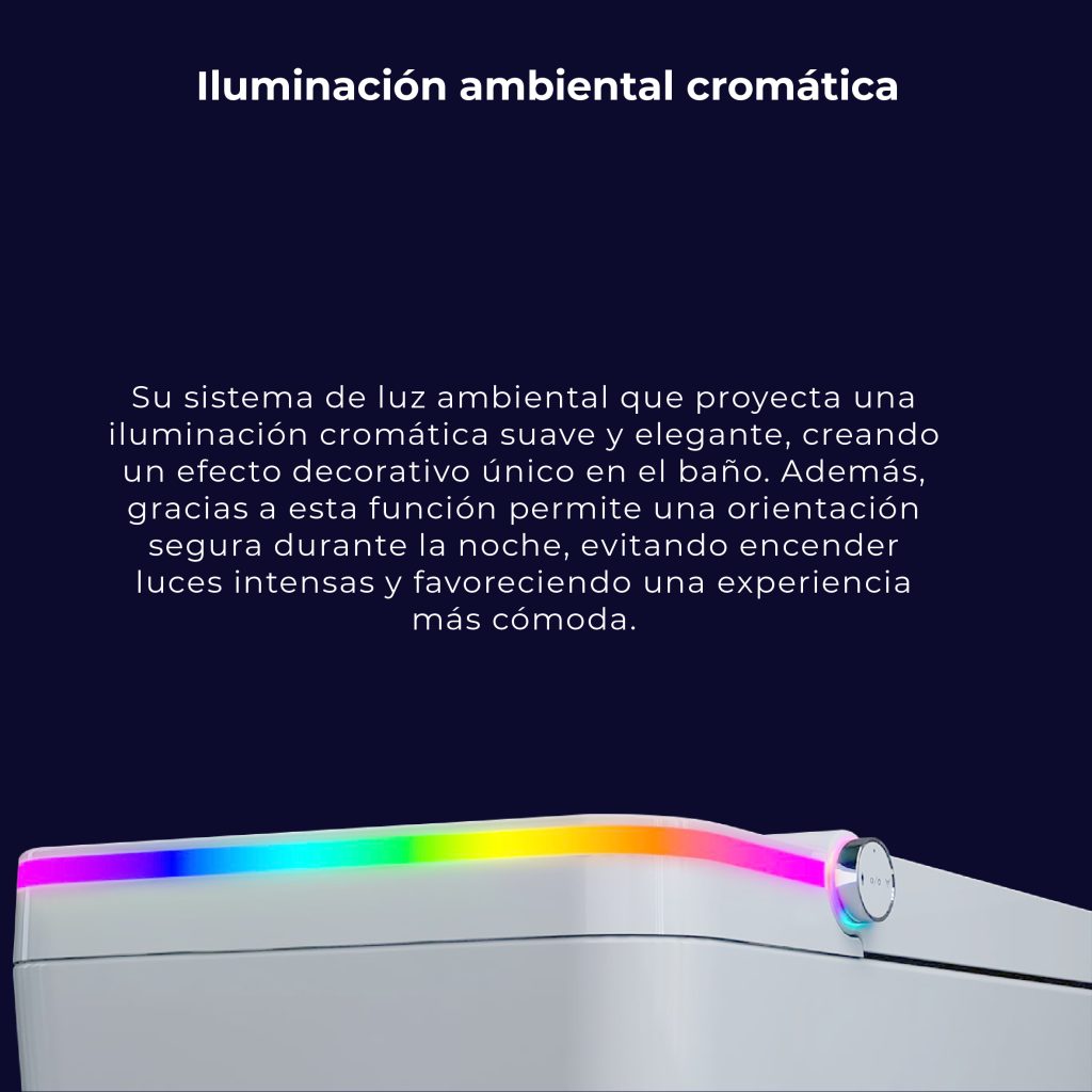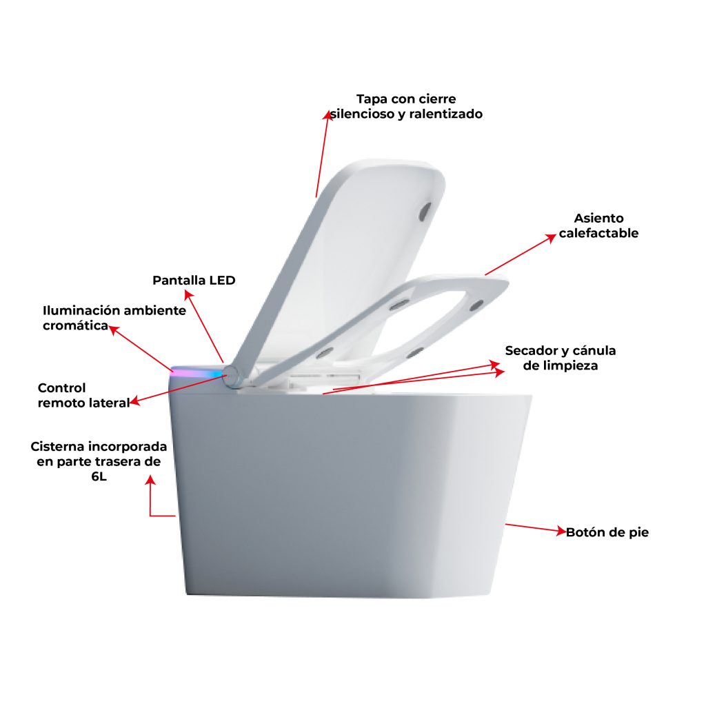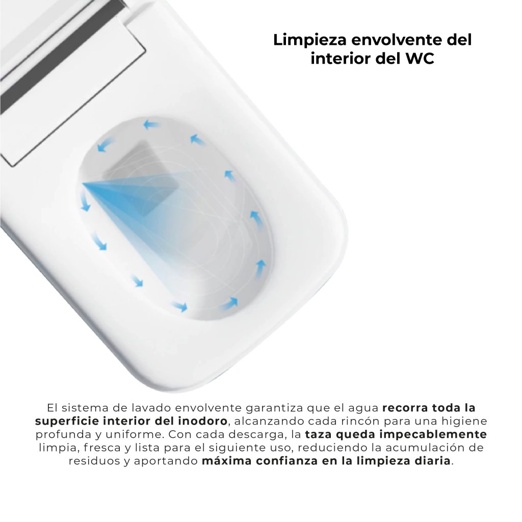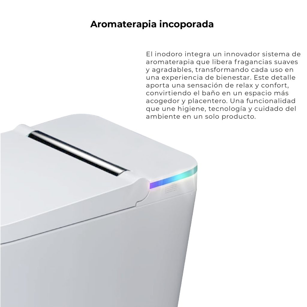 Destacada por su sistema de descarga 180º con espuma, que garantiza una limpieza eficaz y envolvente, apertura y cierre automático por sensor con radar de presencia y por control de voz con IA, lo que permite activar funciones sin contacto con el inodoro y depósito para aromaterapia, además de las funcionalidades de limpieza, secado y asiento calefactable que vienen incorporadas. Cuenta tambien con memoria de ajustes para 2 usuarios para permitir la personalización de sus funciones.