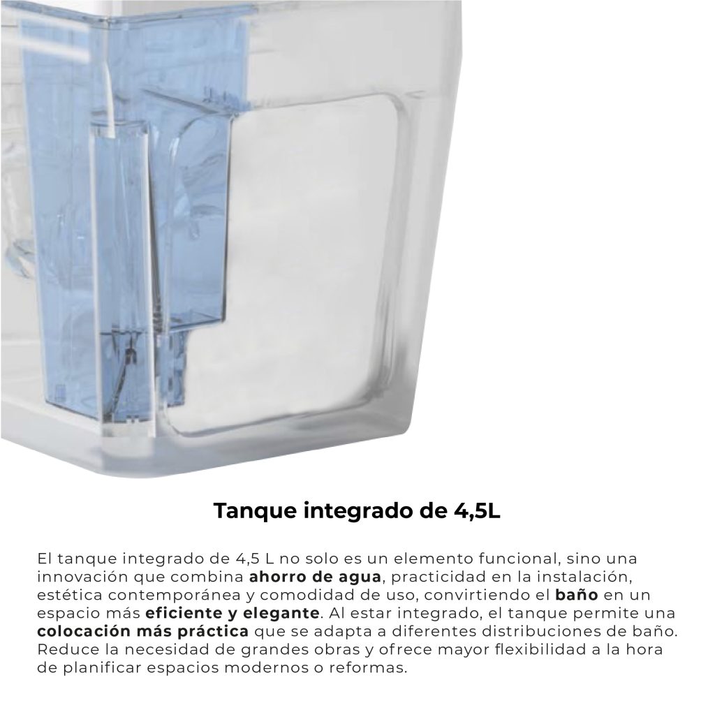Este modelo incorpora una cisterna integrada de 4,5 litros con salida vertical.