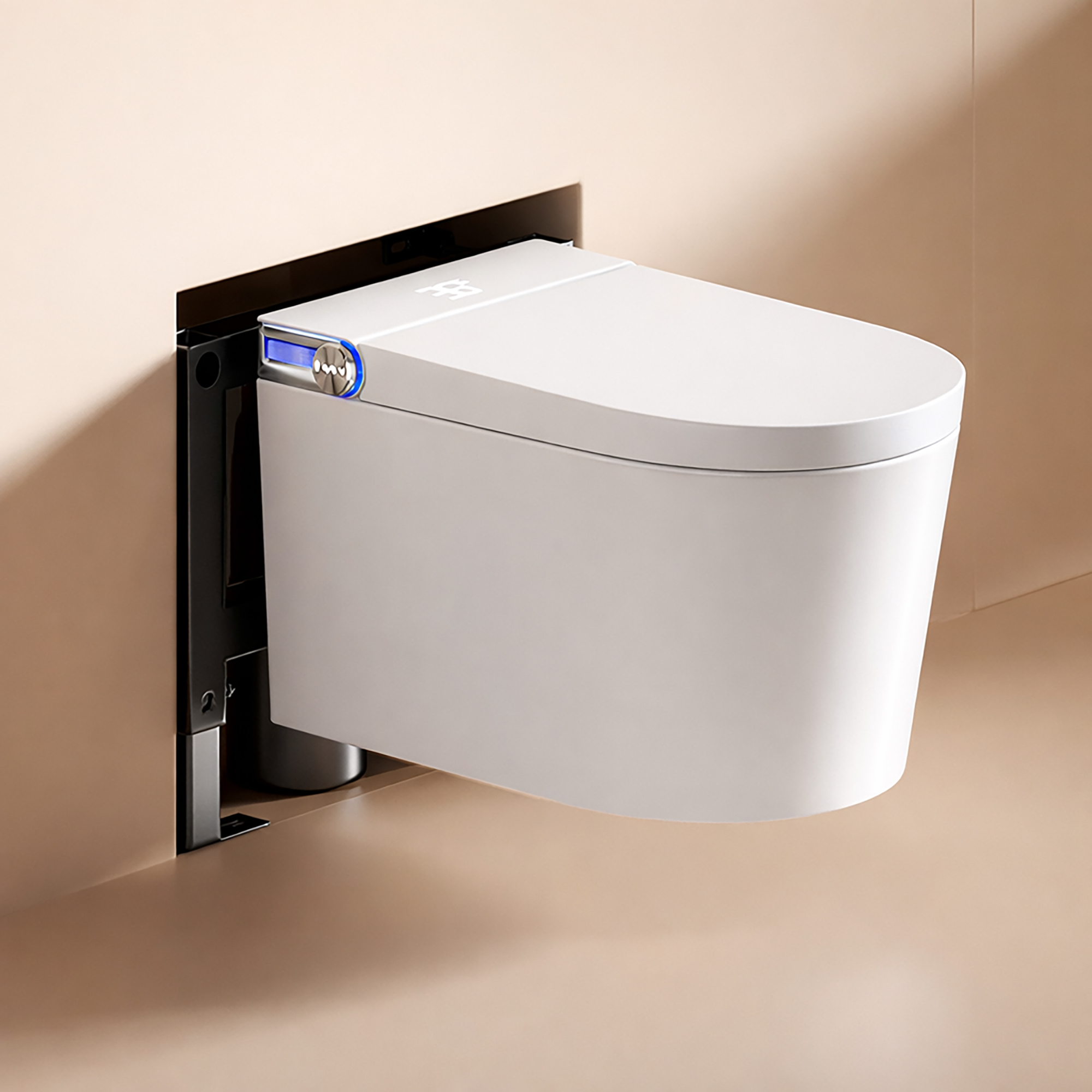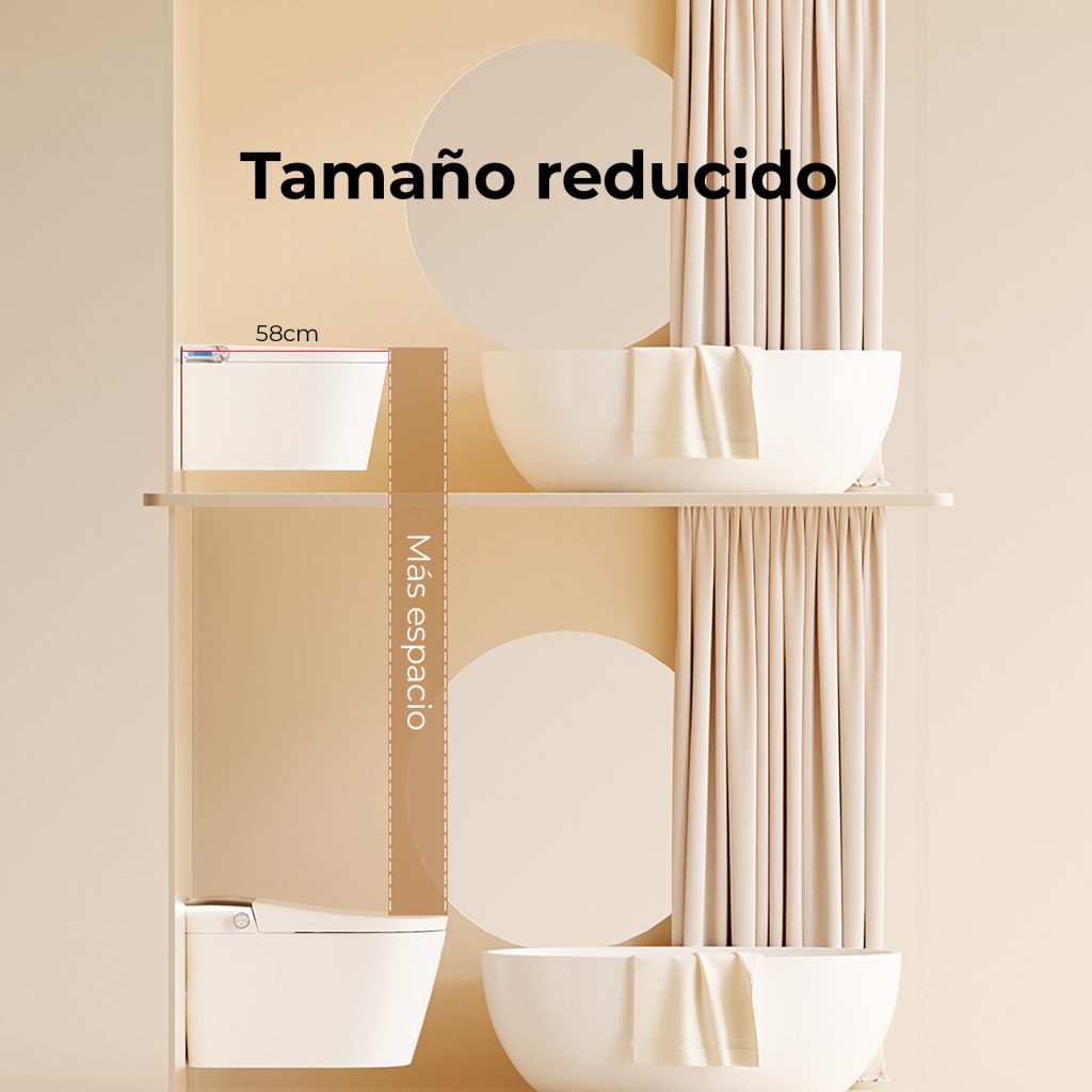 Inodoro inteligente ACWALL suspendido, preparado para instalación en bastidor empotrado a pared, que facilita la limpieza del suelo y aporta una estética minimalista. Diseño compacto de 58 cm de profundidad, adecuado para baños contemporáneos y espacios optimizados.